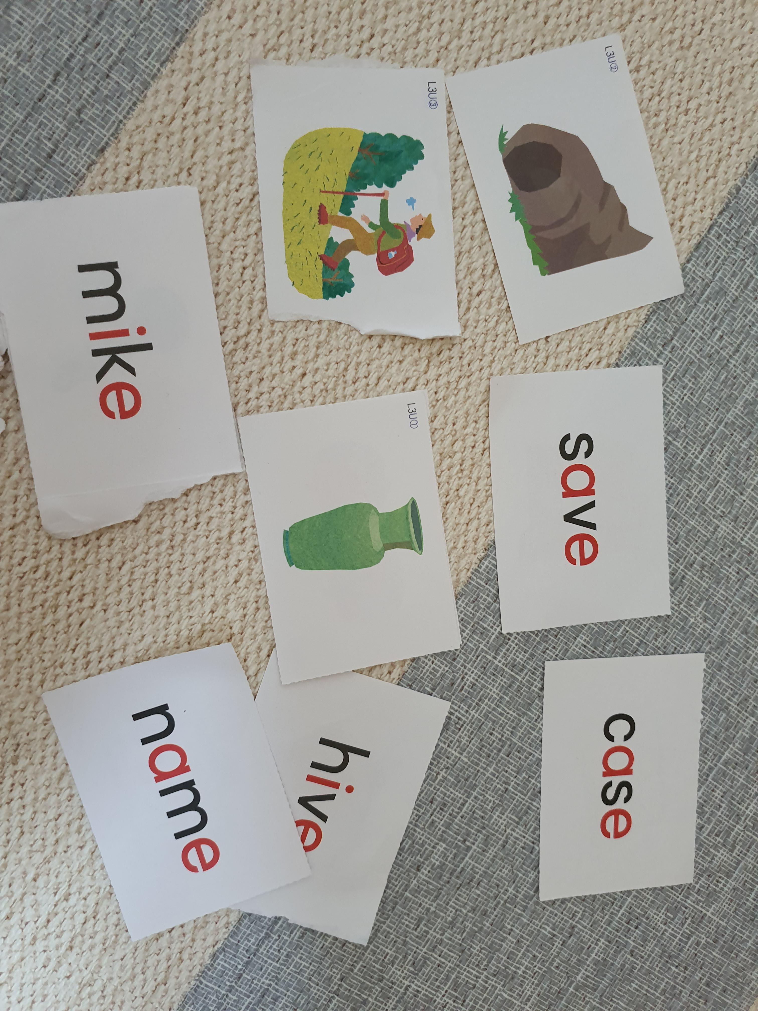 단어 카드는 게임할 때도 사용하지만, 평소에 통에 넣어 두고 하나씩 뽑아서 읽는 게임도 했습니다. 뭐든 경쟁하듯이 게임을 해야 집중하고 반응이 좋더라구요.