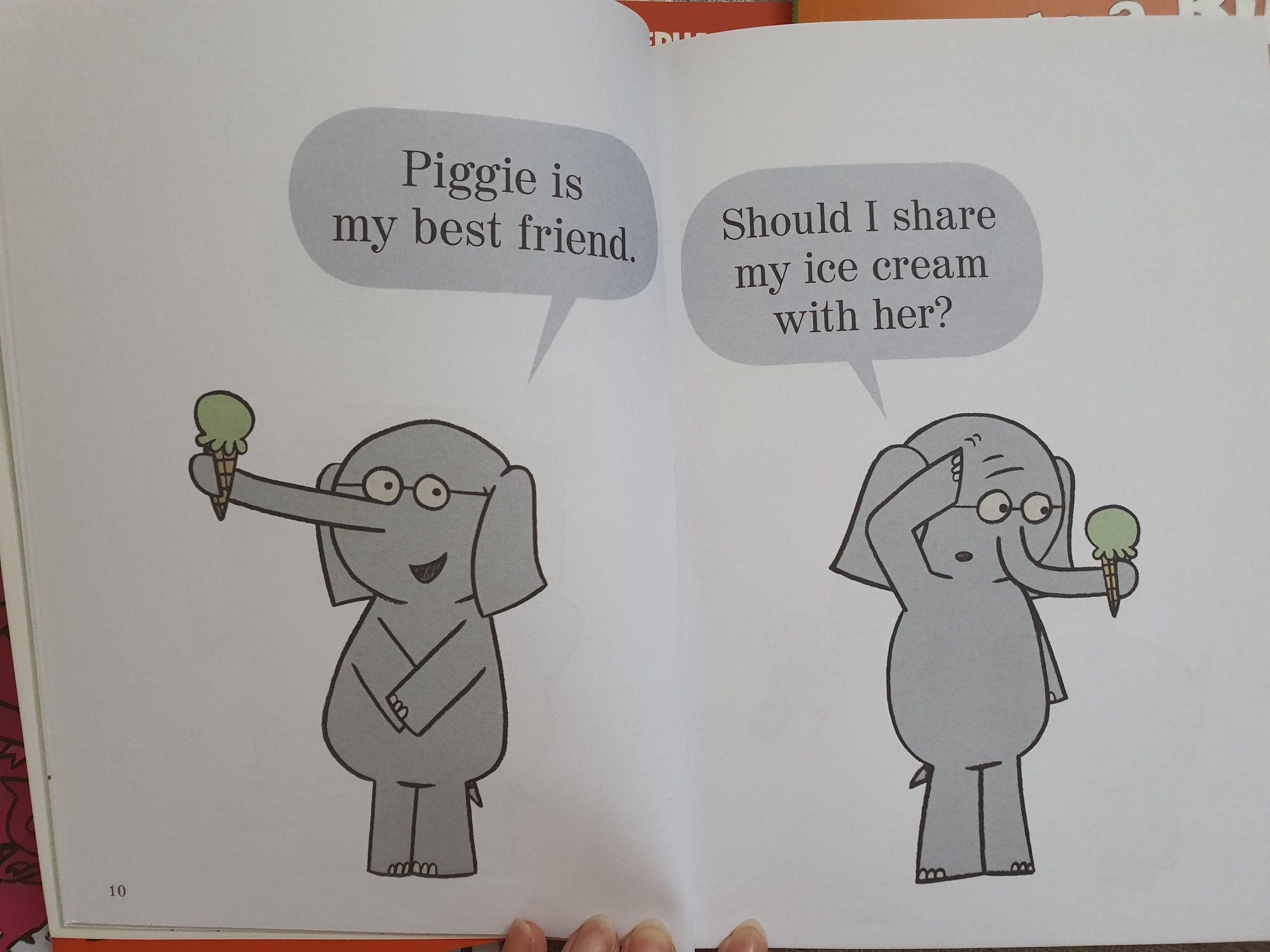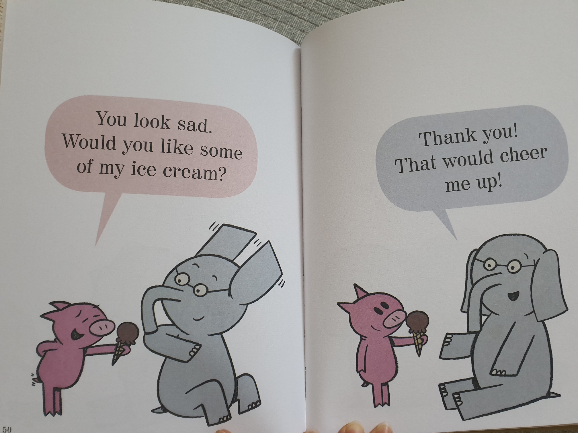 몇 권만 찍어 봤습니다. 코끼리와 돼지 모습이 귀엽죠. 둘은 서로 좋아하는 친구사이입니다. 서로 사이좋게 지내며 안 보면 보고 싶어하고 배려도 잘 하지만 우스꽝스러운 에피소드들이 나옵니다. 코끼리는 소심하면서도 고민이 많고 엉뚱하기도 합니다. 아이스크림을 나눠 먹을까 말까 고민하다가 다 녹아서 속상하기도 하고, 재채기하는 이유가 돼지때문이라고 생각해서 더 이상 친구와 가깝게 지낼 수 없다고 슬퍼하기도 해요(사실 감기ㅋ). 친구들을 코끼리코 위에 태워 줄때는 부러지지 않던 코가 길가다 넘어져서 부러지고요~ 가장 웃겼던 책은 코끼리랑 돼지가 둘다 책 속에 있다는 사실에 놀라는 장면이었어요. 작가의 센스가 대단하다고 생각했어요. 7살 오빠, 4살 동생은 같이 듣는데 그림만 봐도 빵빵 터집니다ㅎㅎ저도 같이 엄청 웃는데 어른이 봐도 재미있네요.