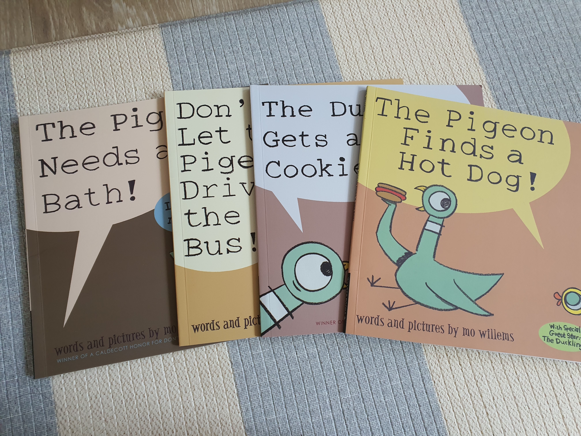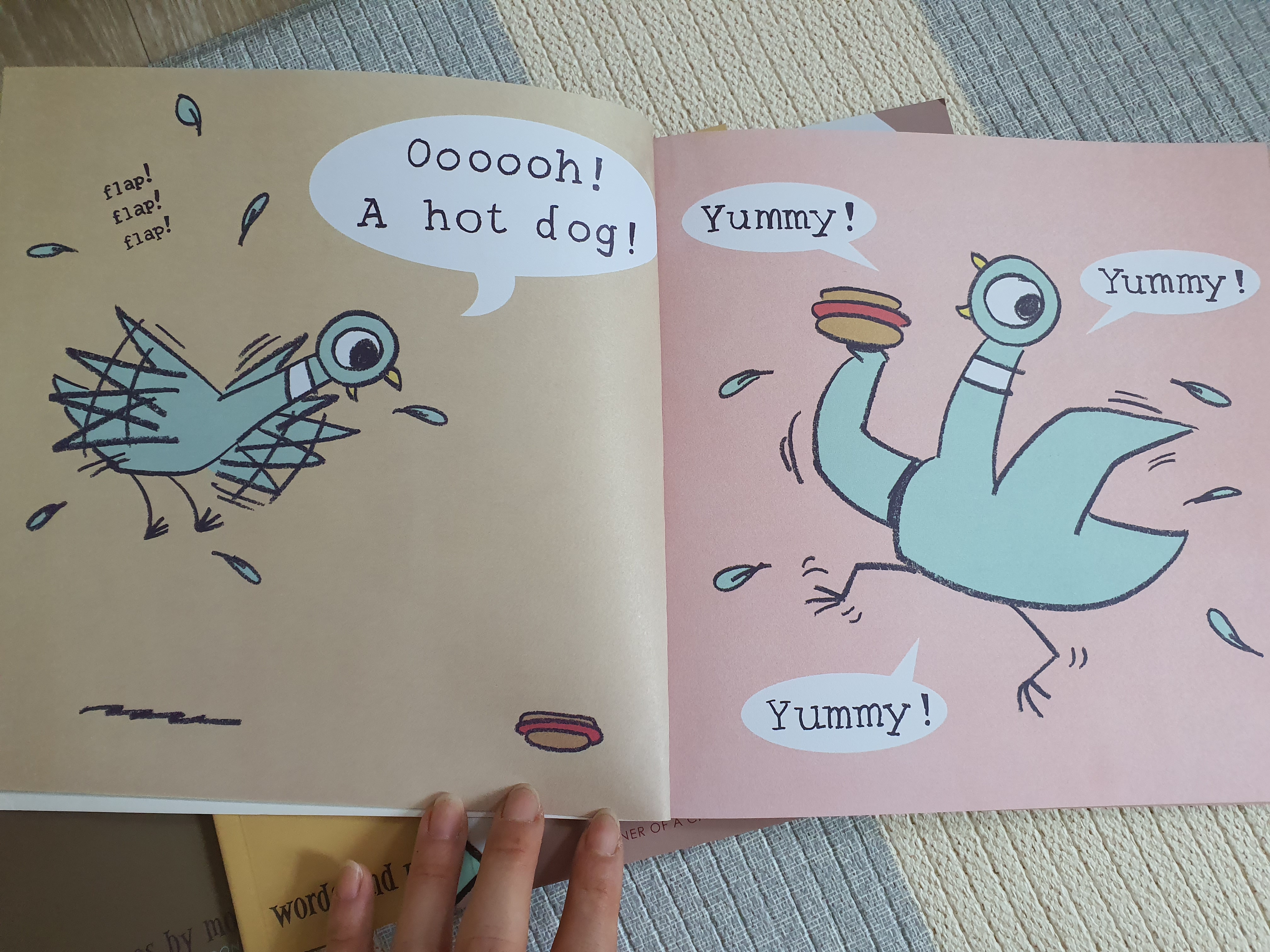 피죤 책도 대화체에 글밥이 많지는 않지만, 단어나 표현이 엘리펀트앤피기보다는 조금 더 어려웠어요. 엘리펀트앤피기를 먼저 보고 난 후 보면 좋을 것 같아요. 둘다 직접 사서 재미있게 본 책들이에요. 추천합니다!!