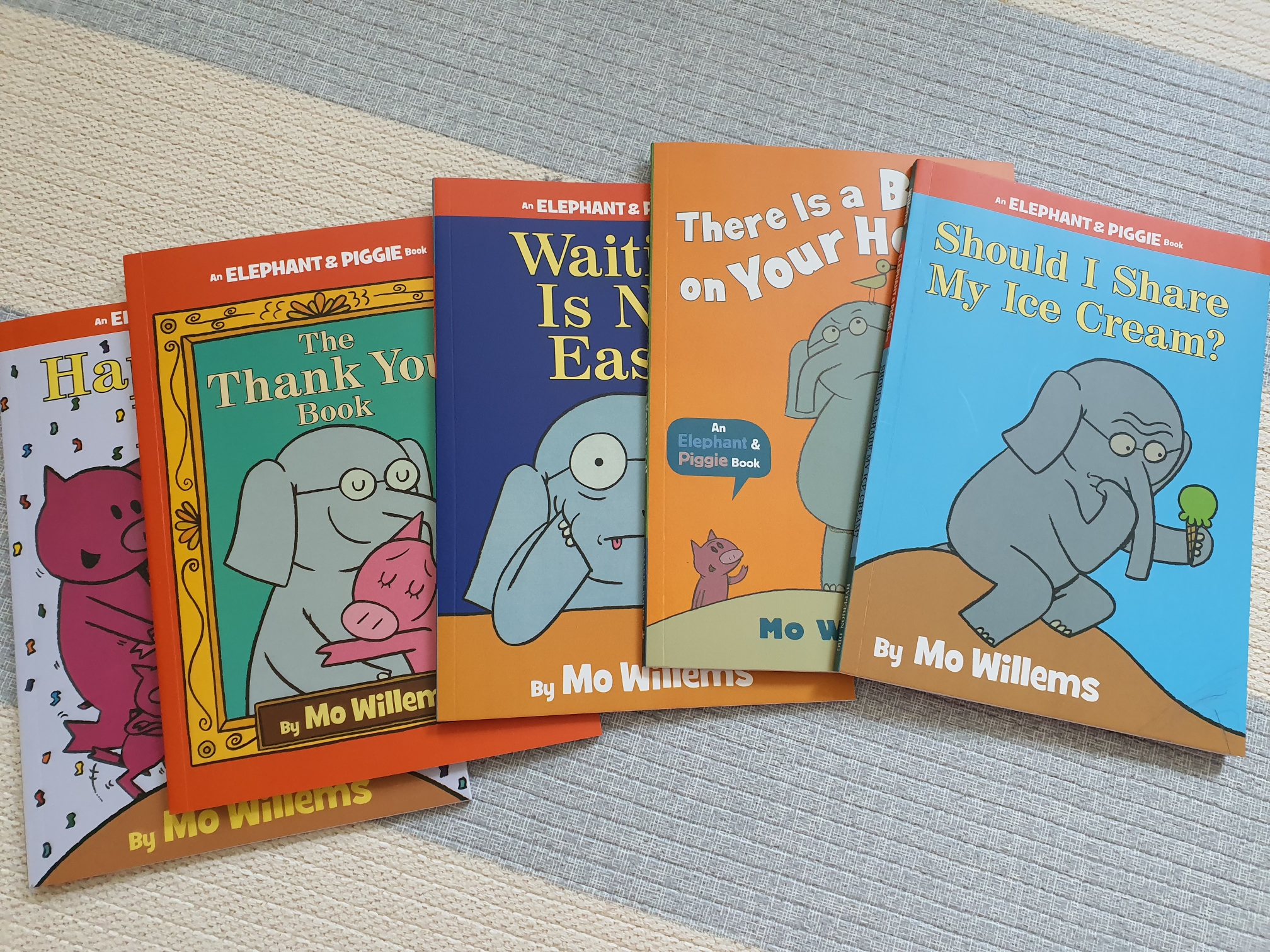 이번에 소개할 책은 Mo willems의 '엘리펀트 앤 피기'와 '피죤'입니다. Mo willems 작가의 책 피죤을 재미있게 읽고 엘리펀트 앤 피기도 잘 보겠다 싶어서 구매했는데 예상 적중! 요즘은 이것만 본답니다. 다행히 25권짜리 세트를 사서 열심히 돌려 보고 있고 단어가 쉽고 말풍선 형태로 되어 있어서 읽어 주기 부담이 없네요. 동화책도 ar지수가 살짝만 높으면 잘 안쓰는 단어가 나와서 읽어 주다가도 무슨 말이지 잘 몰라서 검색하고 찾아 보는데 이 책은 그러지 않아도 되서 참 좋네요.ㅎㅎ 저도 영어를 잘 못하거든요. 아이들이랑 같이 배워 가는 처지랍니다. 기초 리딩하는 친구들에게 딱인 책입니다.