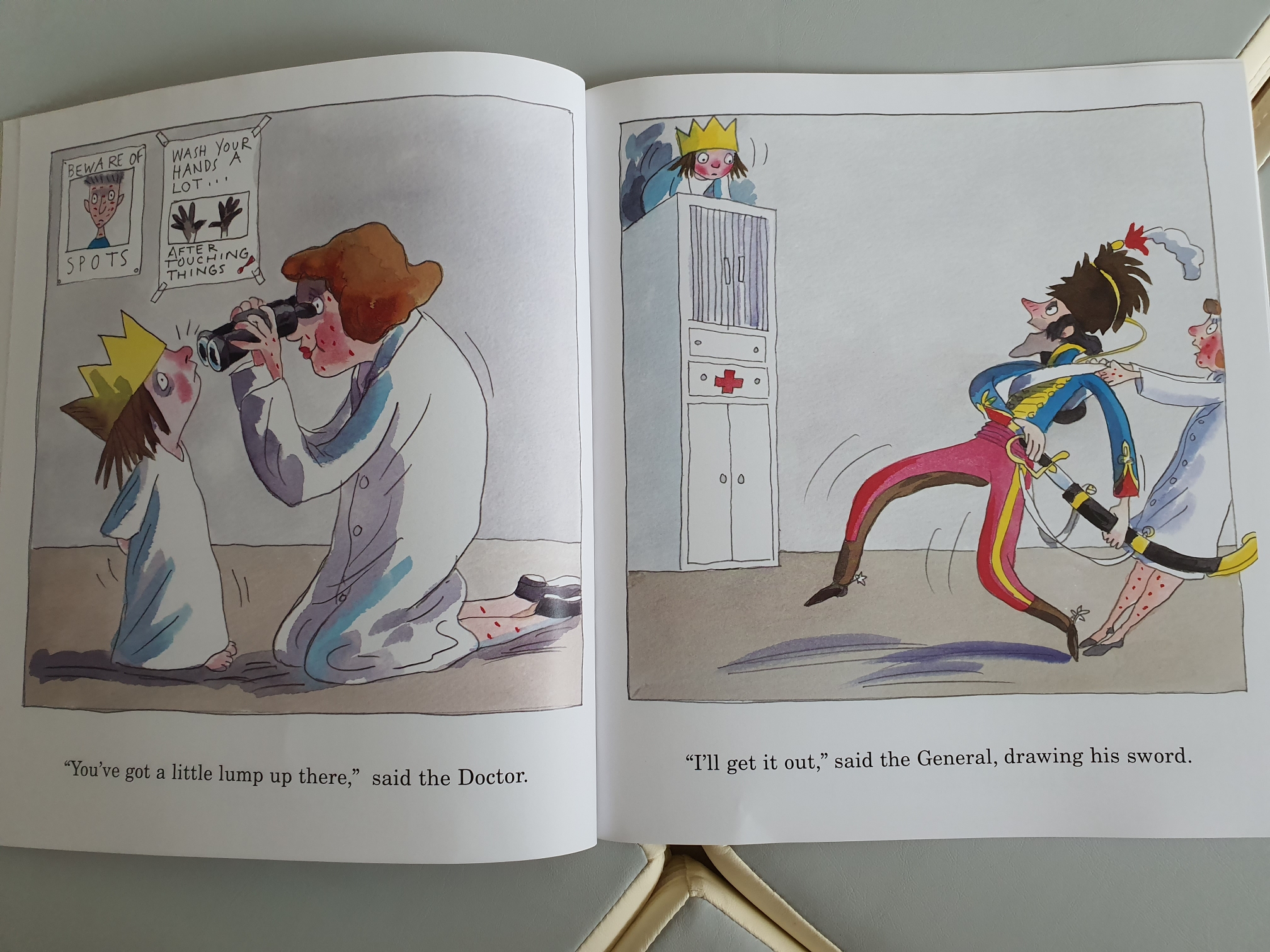 I don't want to go to hospital! 공주가 코를 다쳐서 병원에 가야하는 상황인데, 병원에 가지 않겠다고 숨습니다. 성 안에 있던 사람들은 모두 공주를 찾으러 다닙니다. 방에도 없고, 쓰레기통 안에도 없고, 보트에도 없고, 지붕에도 없었는 데, 다락방에서 공주를 찾습니다. 그래서 병원에 강제로 끌려 갔다가 치료하고 돌아 왔는데 엄마의 잔소리를 듣고 다시 병원에 가겠다고 합니다. 어느 아이나 엄마의 잔소리는 싫은가 봅니다. ㅎㅎ