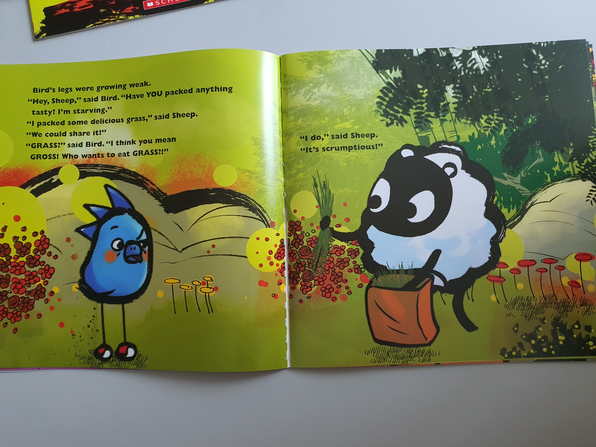 새는 동물친구들과 등산을 갑니다. 새는 배가 너무 고파진거에요. 친구들에게 먹을 것을 달라고 합니다. 동물친구들은 각자 자신이 가장 좋아하는 간식을 꺼내서 줍니다. 하지만 새는 다 싫어하는 음식이죠. 어떻게 먹냐고 질색합니다ㅎㅎ 하지만 쓰러질듯이 너무 배가 고파서 한번 먹어 보기로 합니다. 한번 먹어보니 나쁘지 않은 거에요. 편식쟁이 저희 아들에게 이 구절에서 잔소리를 했습니다. ㅎ새도 처음에는 맛없을 것 같다고 했지만 먹어보니 괜찮았다고 하는 것처럼 너도 먹어보지도 않고 안 먹겠다고 하지 말라고요^^ 엄마는 자나깨나 잔소리하는 존재인가봐요....ㅎㅎ