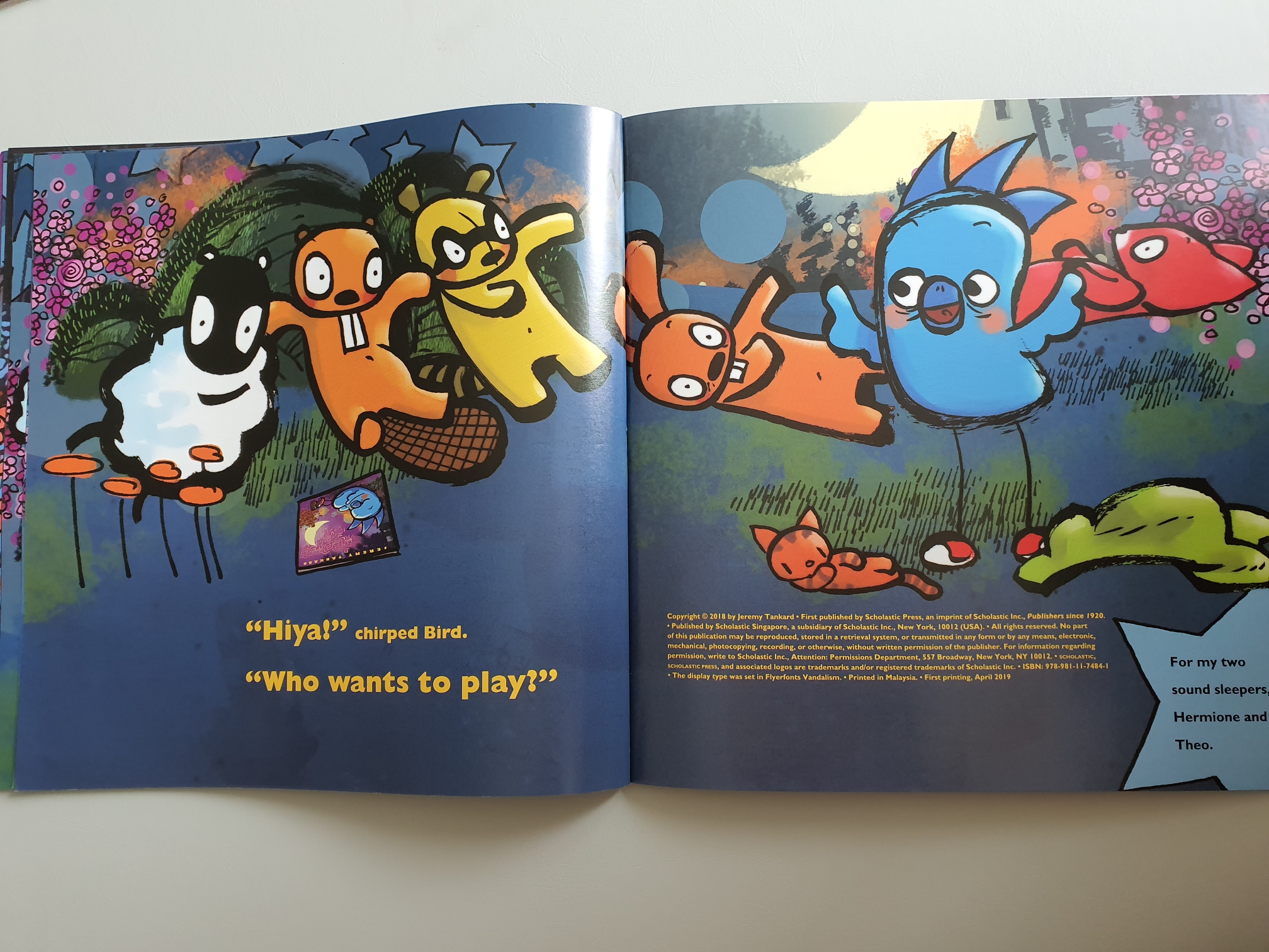 잘 시간인데 새는 자고 싶지 않아요. 그래서 동물친구들을 찾아가서 놀자고 합니다. 자고 싶은 친구들은 새를 재우기 위해서 책도 읽어주고 인형도 주고 담요도 덮어주고 잠들때까지 숫자도 세어줍니다. 드디어 새는 잠이 들고 친구들이 자려고 하는데! 새는 그새 다 자고 벌떡 일어나서 who wants to play! 라고 말해서 친구들이 깜짝 놀랍니다. 표정이 너무 귀엽죠~^^ 제 아들딸도 밤에 잘 시간이라고 말하면 그렇게나 싫어합니다. 하나도 못 놀았다면서 투정부리지요.(백번은 넘게 논 것 같은데???) 딸은 3살때 자라고 했다고 오열한 적이 있어요ㅎㅎ귀여워서 동영상을 찍어 두었어요. 나중에 크면 보여줘야죠^^ 너무 놀고 싶어서 잘 수 없는 아이들에게 공감할 수 있는 책이에요.