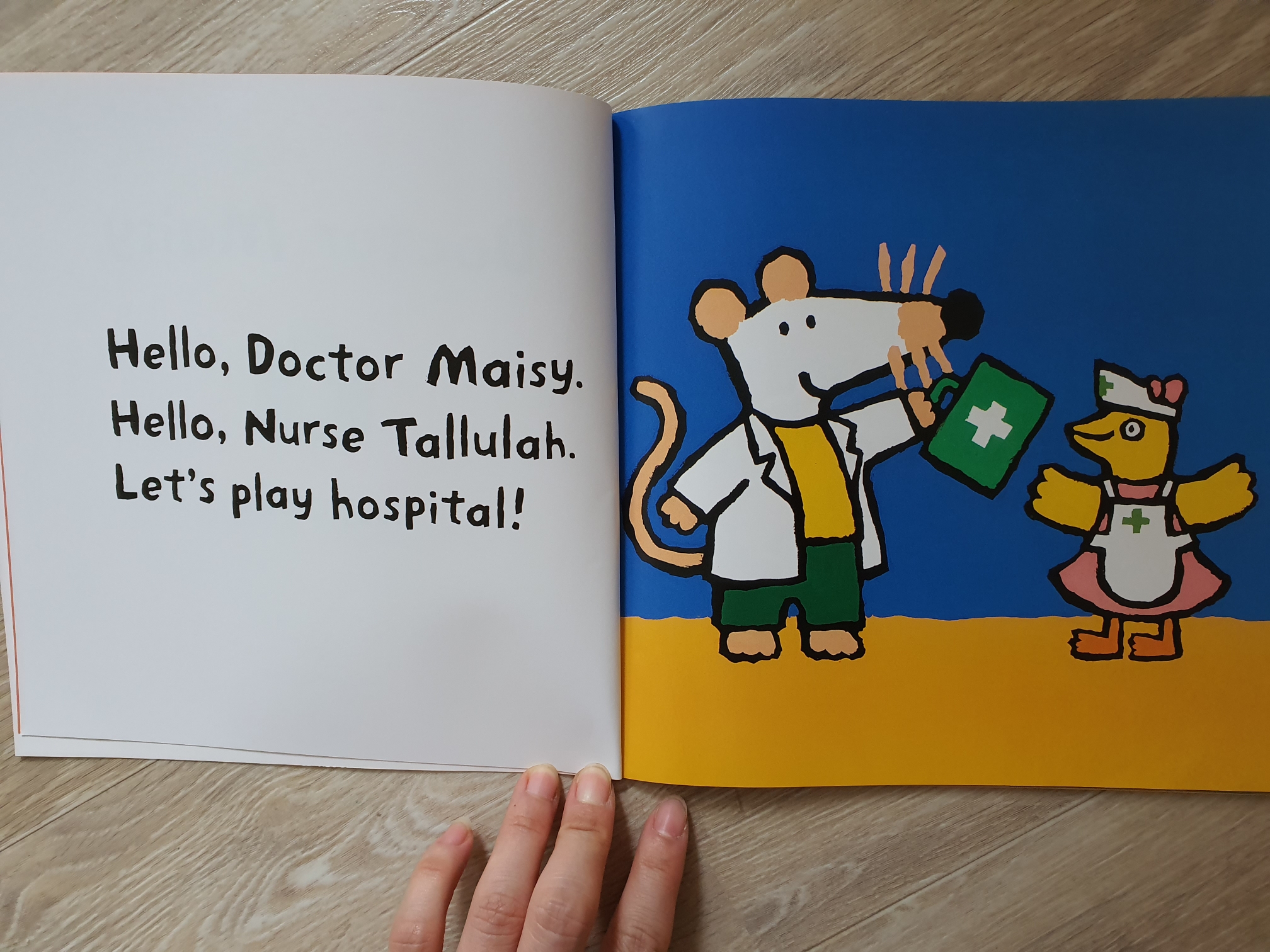 doctor maisy입니다. 메이지가 병원놀이를 친구와 합니다. 메이지는 의사이고, 친구는 간호사죠. 판다인형은 환자여서 청진기도 해보고 열도 있다고 합니다. ㅎㅎ 귀엽죠. 유아기에 매일하는 놀이 중 하나죠...... ㅋㅋㅋ
