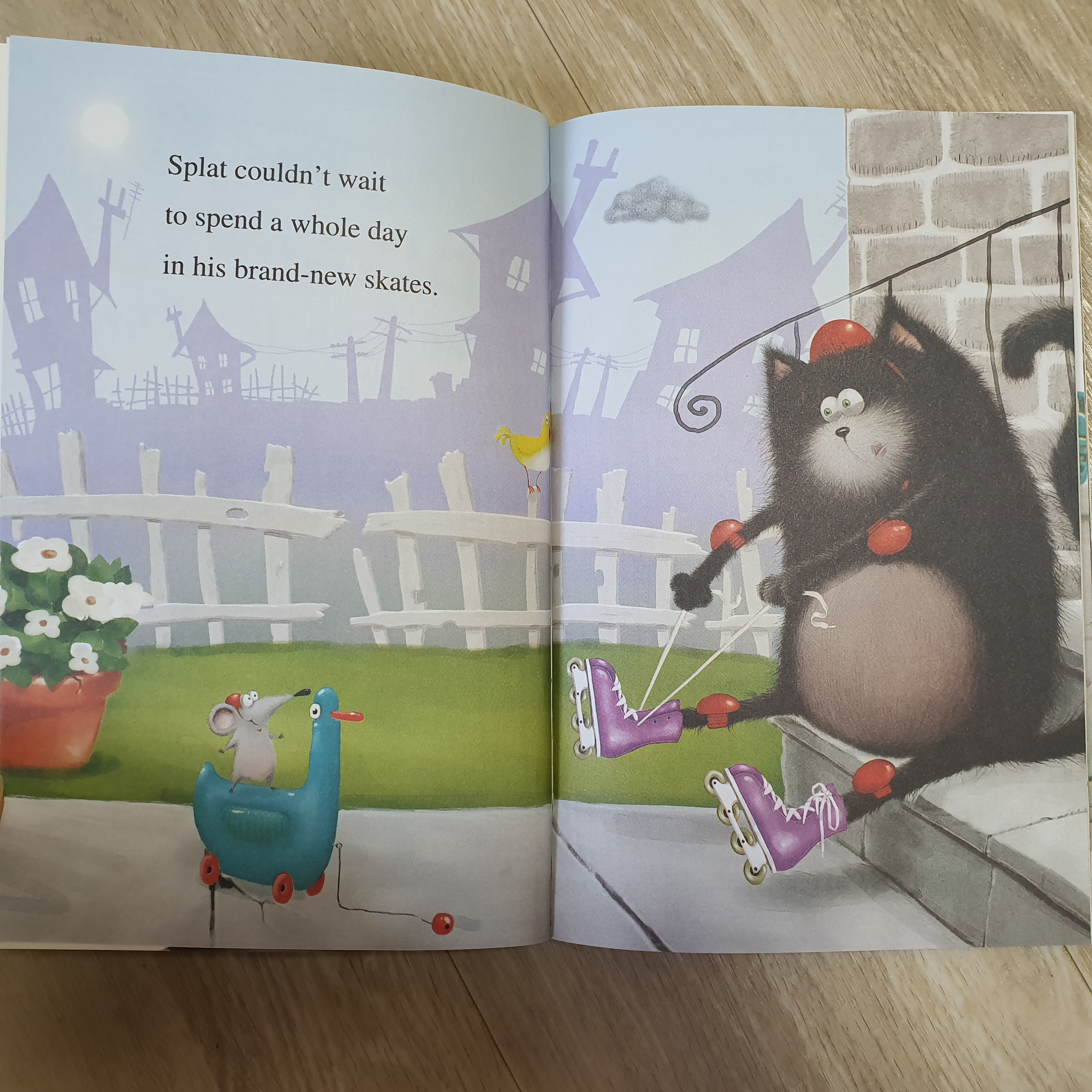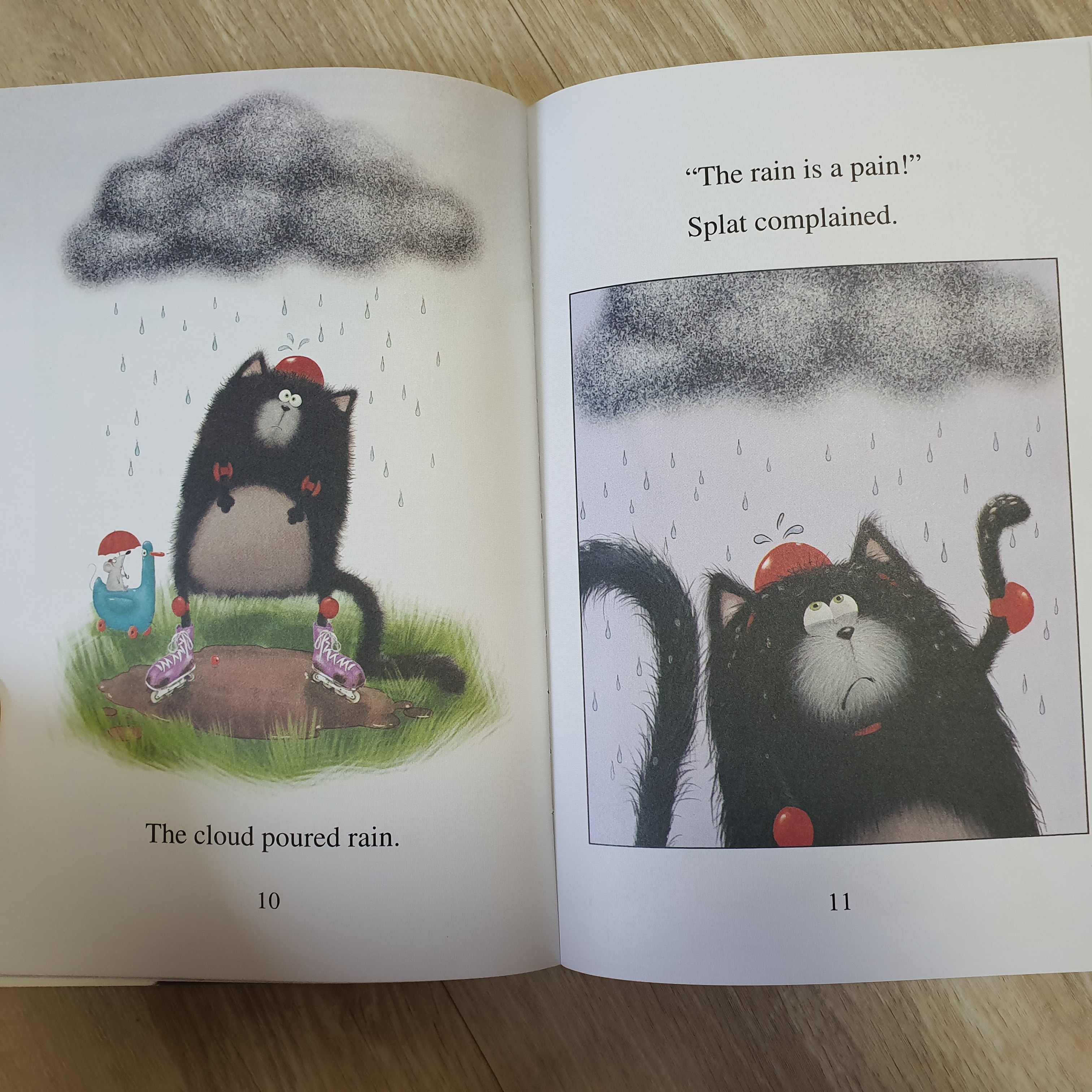 스플랫은 새로산 스케이트를 타고 싶어서 기다릴 수가 없어요. 하지만 비가 오죠. 결국 스케이트는 진흙이 묻은 상태에서 집에 들어와서 사고만 잔뜩내는 스플랫입니다.
