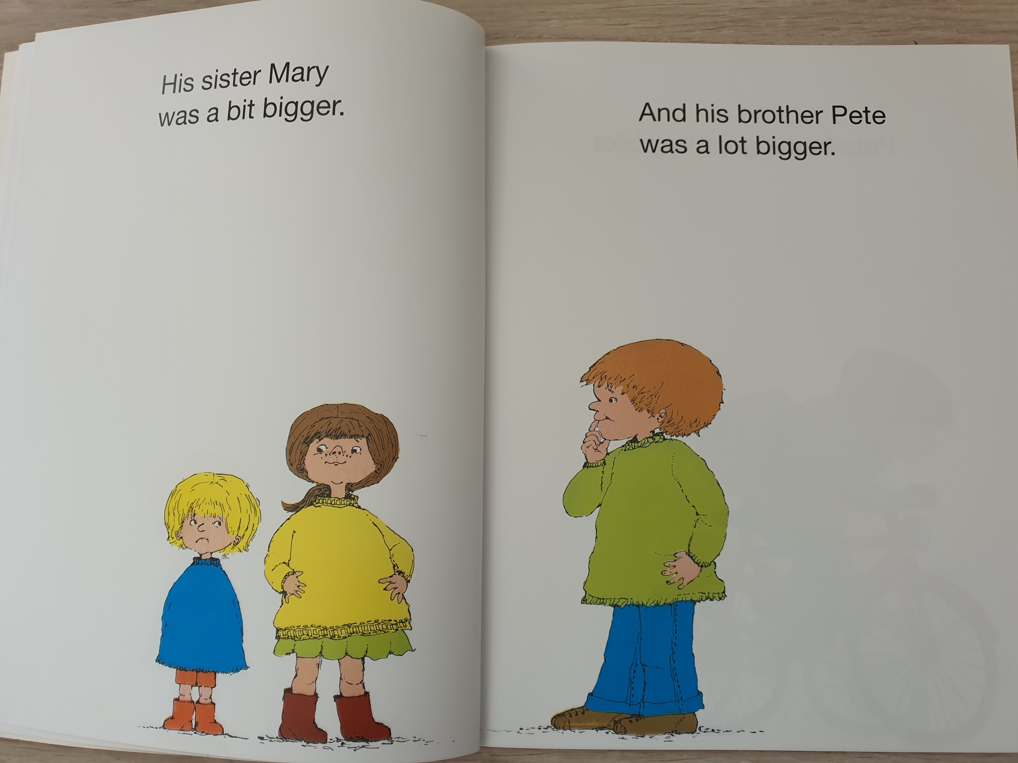 titch는 책 주인공 여자아이 이름이에요. 노랑머리의 귀여운 아이네요. 언니와 오빠에 비해 당연히 키도 작고, 자전거도 작은 것을 타야하고, 연도 잘 못 날려요.