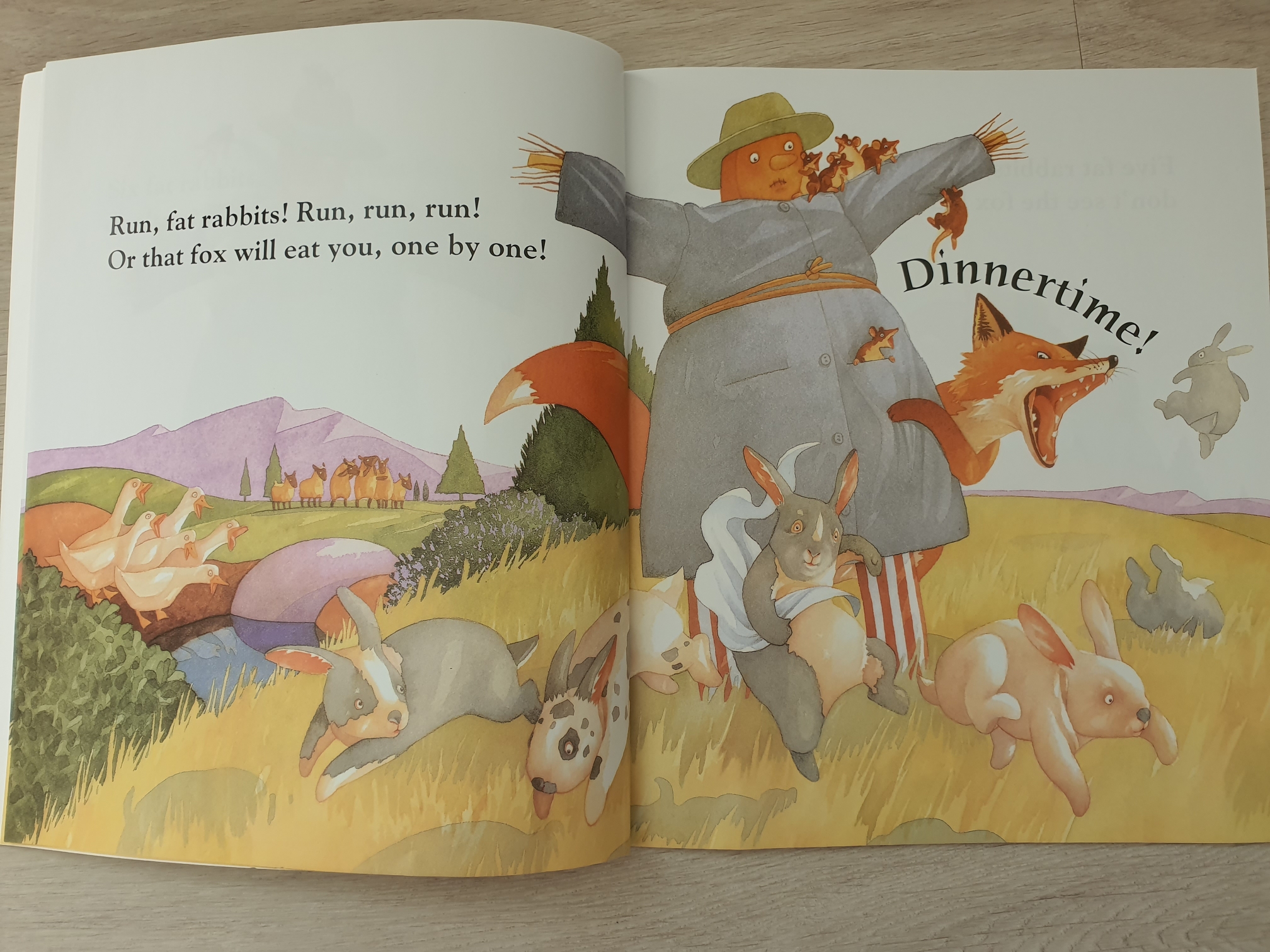 6마리 토끼들이 놀고 있는데, 여우가 나타나서 놀란 토끼들이 도망을 갑니다. 그때 멀리서 dinnertime~~ 이라고 외치는 소리가 들리죠. 누구의 소리일까요? 6마리 토끼들은 도망가면서 한마리씩 사라집니다. 여우에게 잡힌걸까요? ㅠㅠ